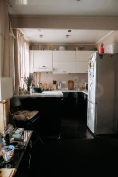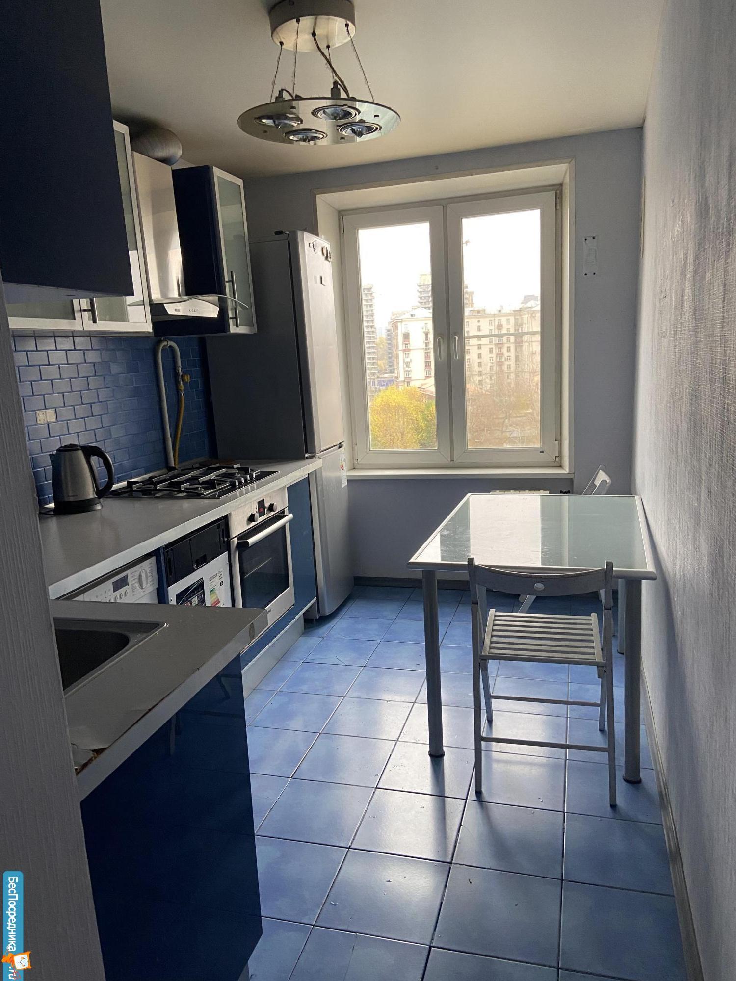 Техника: варочная панель, духовой шкаф, большой холодильник (300 л), стиральная машина, микроволновая печь, чайник