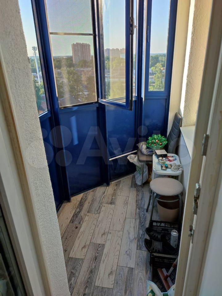Из кухни и детской-остекленный балкон со встроенными полками для хранения.