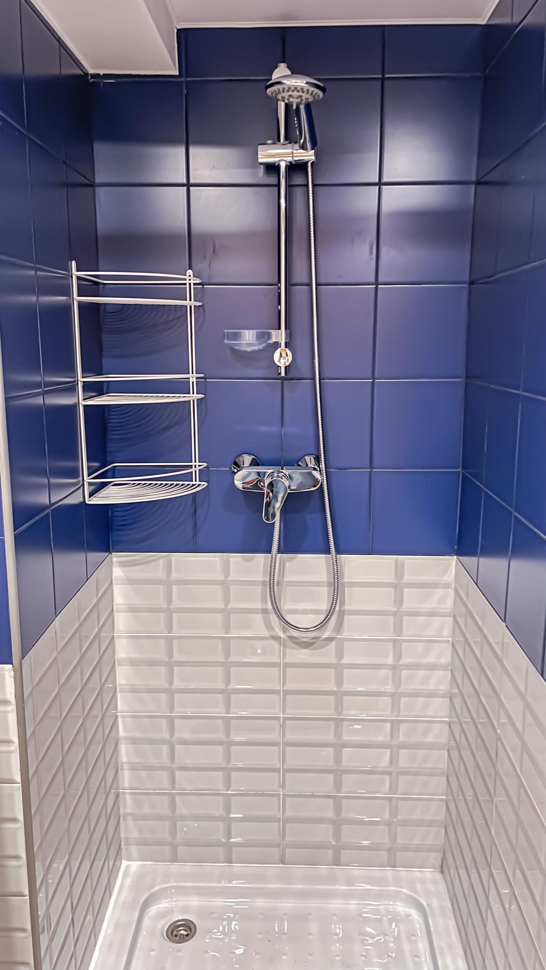* На 1м уровне - Уютный диван, стол, кухня с холодильником, плитой, посудой, шкаф для одежды, санузел, стиральная машина и душ.