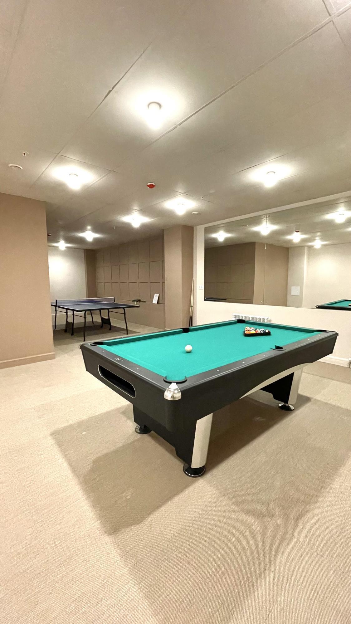 - Есть зал со столом для пин-понга и бильярда.