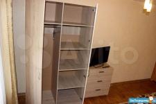 В комнате - шкаф, комод, журнал. столик, стул, столик с зеркалом. телевизор, кровать, матрас новые. Окна пвх.