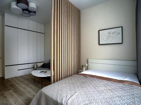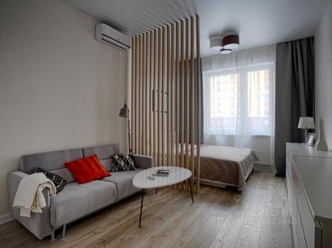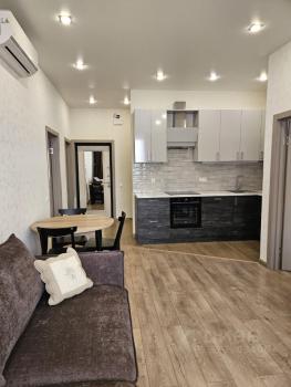 Квартира состоит из прихожей, санузла с ванной, кухни-гостиной и изолированной спальни. Есть кондиционер. . На кровати ортопедический матрас. Диван раскладывается. В квартире все новое и выполнено из дорогих качественных материалов ,высокоскоростной интернет. Под ЖК есть подземный паркинг и существует возможность дополнительно арендовать машиноместо