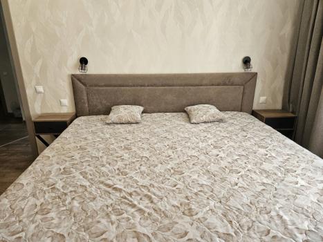 В 2022 году в квартире выполнен современный дизайнерский ремонт. Квартира укомплектована всем необходимым для комфортного проживания: большой двухкамерный холодильник, микроволновая печь, стеклокерамическая варочная панель, духовой шкаф, вытяжка, электрический чайник, стиральная машина, ЖК телевизор, кондиционер, пылесос, гладильная доска, сушилка для белья, стремянка.