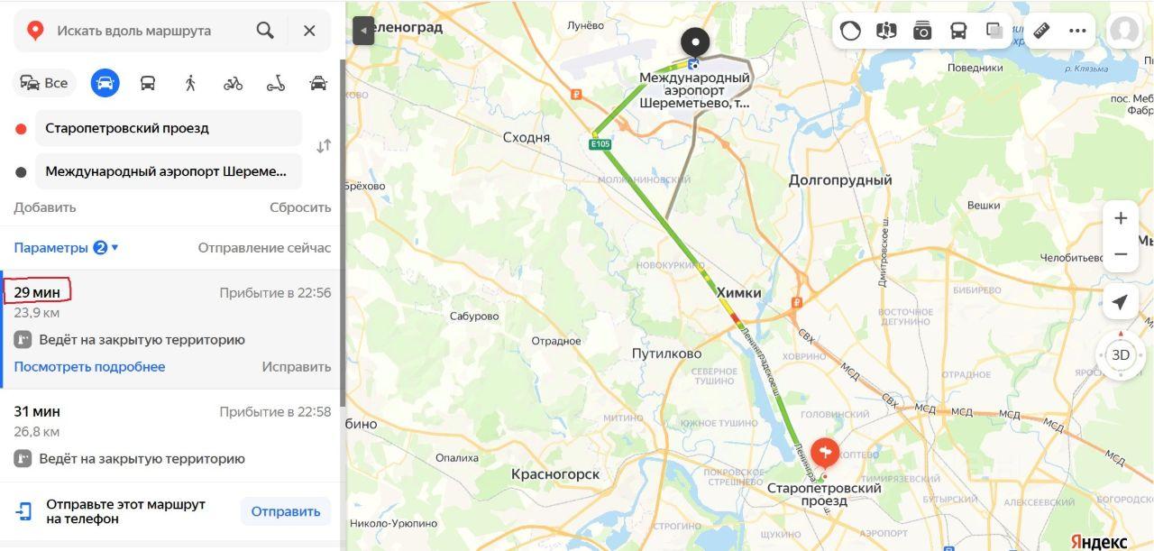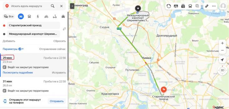 до аэропорта Шереметьево -30 мин. на автомобиле.