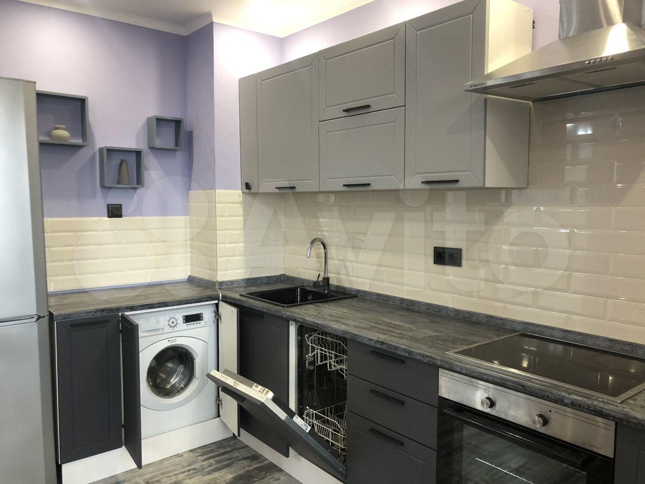 Также есть полный кухонный гарнитур, холодильник, варочная панель, духовой шкаф, посудомойка, микроволновка, минимальный набор посуды.