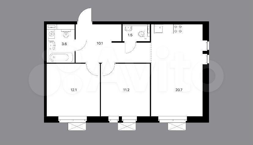 Кухня (встроенная техника), микроволновая печь, чайник + гостиная(телевизор), спальня (меблированная), детская/кабинет. Два санузла. Проведена генеральная уборка.