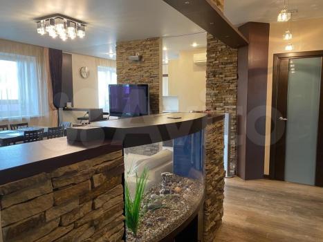 Большая ,светлая гостиная -кухня с аквариумом.
