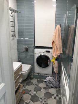 Санузел объединенный. Установлены современная ванна и инсталляция. Смесители и лейка душа немецкого производства. Имеется стеллаж для одежды.