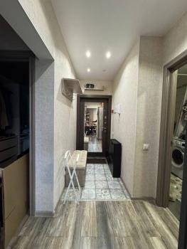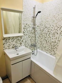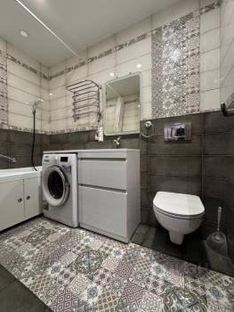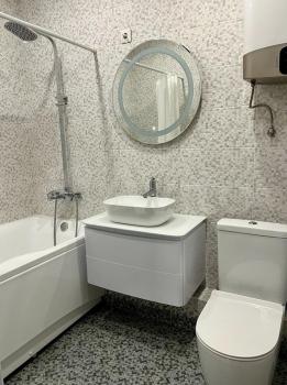 В квартире сделан современный евроремонт, что позволяет сразу заехать и наслаждаться уютной атмосферой. В комнате и на кухне есть вся необходимая мебель, а также современная техника: холодильник, кондиционер, телевизор, посудомоечная и стиральная машины. Санузел совмещенный, с ванной, что обеспечивает дополнительное удобство.