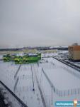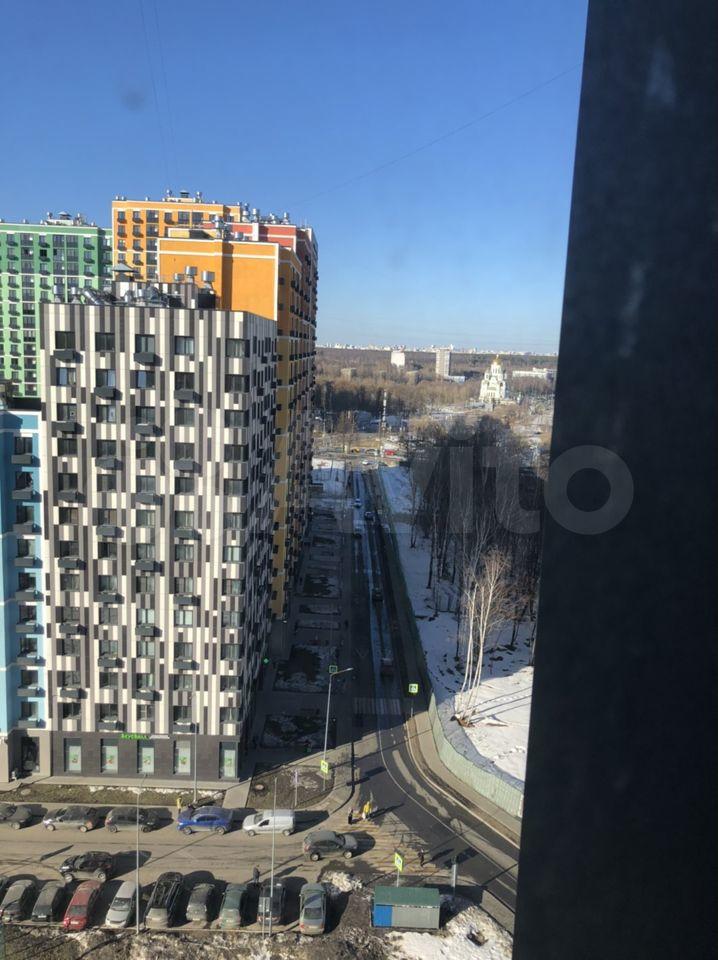 Вид из окон на просторную аллею около дома, храм Сергия Радонежского и Мещерский парк.