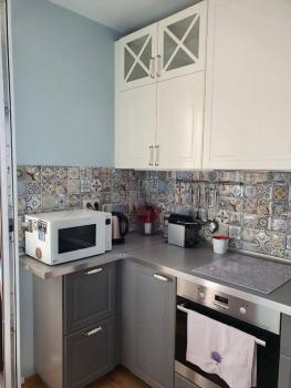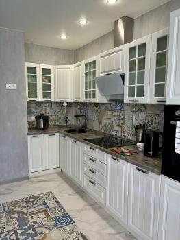 Кухня оснащена современной европейской и корейской техникой (духовой шкаф, плита, холодильник, посудомоечная машина, чайник). Под мойкой установлен обратноосмотический очиститель с баком. Воду можно спокойно пить без кипячения. При кипячении накипь на чайнике не образовывается совсем. Мембрана очистителя меняется раз в 1-1,5 года.