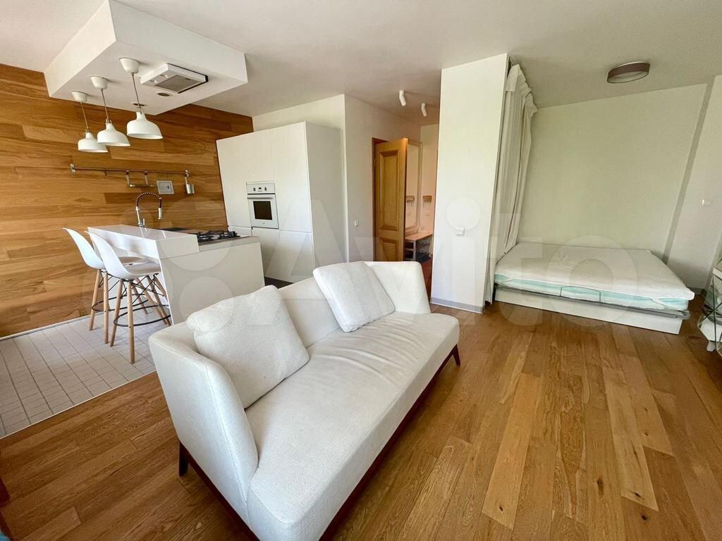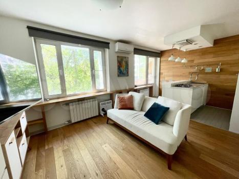 В квартире сделан евроремонт, все детали интерьера продуманы до мелочей. В гостиной и спальне есть мебель, на кухне установлены все необходимые шкафы и техника. Кондиционер, холодильник и стиральная машина обеспечивают комфортное проживание. Санузел совмещенный, с душевой кабиной. Балкон с видом на улицу и двор станет отличным местом для отдыха.