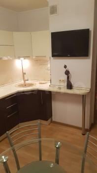 Kуxня обоpудовaнa вceм нeобxoдимым: холoдильник, плита, микpоволновая печь и стиральная машина. Из мебели — вместительные шкафы и обеденный стол. В гостиной установлен телевизор.