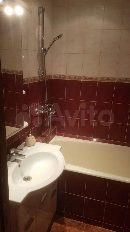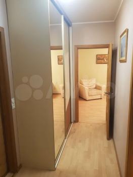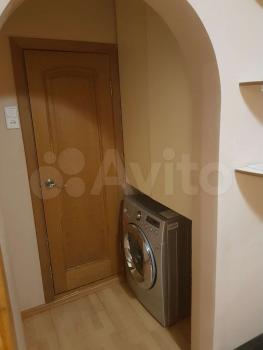 Санузел совмещённый, оформлен плиткой, установлена ванна с гидромассажем. В прихожей есть встроенные шкафы для хранения вещей.
