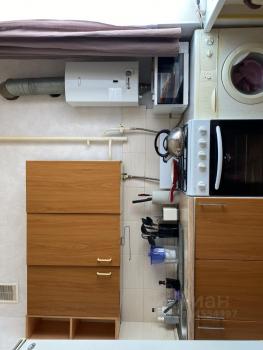 Кухня площадью 6 м² оснащена необходимой техникой: плитой, холодильником и стиральной машиной. Из мебели — вместительные шкафы и удобный диван. Санузел совмещённый, светлый и аккуратный.