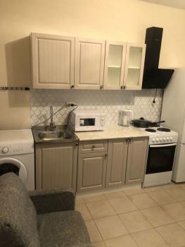 Сдается квартира - студия в новом доме на длительный срок чистоплотной семье или девушке. В квартире есть все удобства для проживания: кухонный гарнитур с плитой, холодильник, микроволновка, дополнительное освещение кухни, стиральная машина, диван.