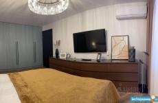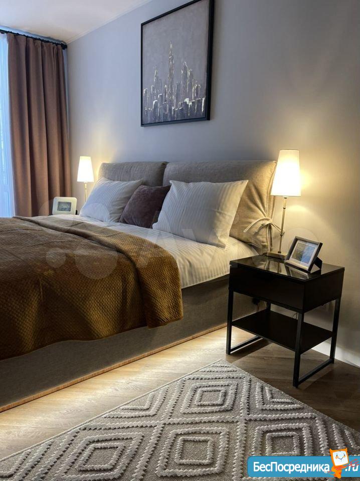 - большая кровать с подсветкой, ортопедический матрас Аскона, подъёмный механизм с дополнительным местом для хранения;