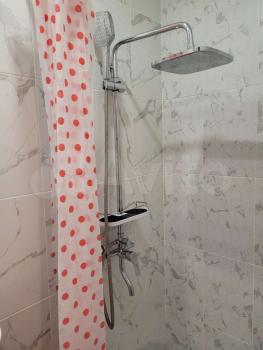 На первом уровне: санузел с душевой кабиной, кухня (варочная панель, холодильник, чайник, микроволновка, фильтр для воды, полный комплект посуды и кухонных принадлежностей), шкаф.