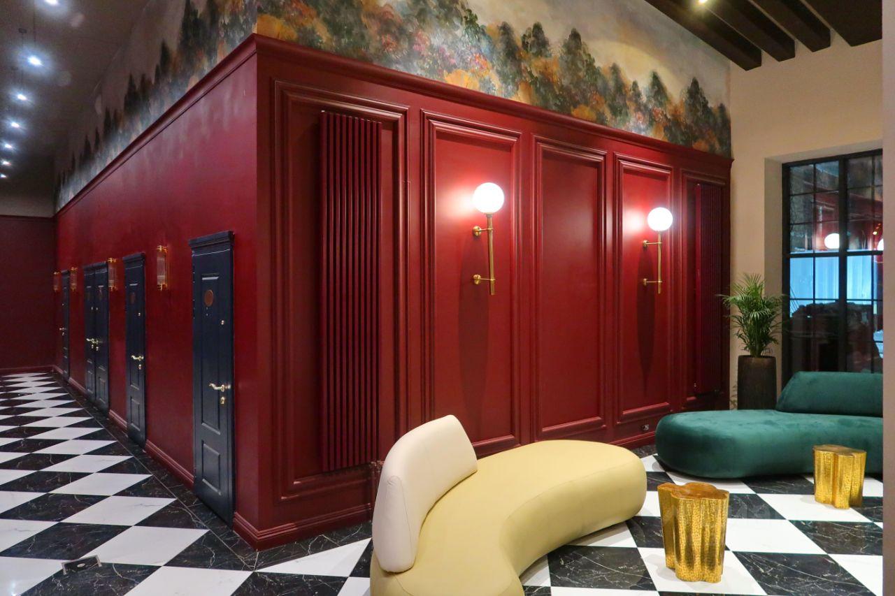 В лобби выполнена дизайнерская отделка. Там расположены зоны для отдыха и общения. Объект находится под круглосуточной охраной. Закрытая территория комплекса.