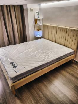 - Двуспальная кровать с ортопедическими ламелями и высоким ортопедическим матрасом;