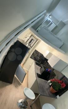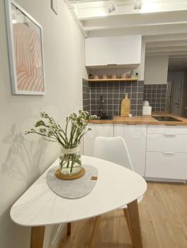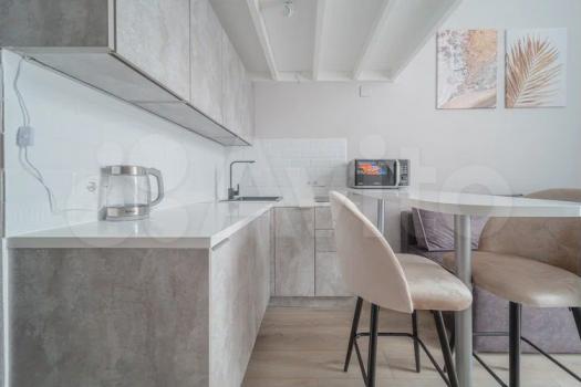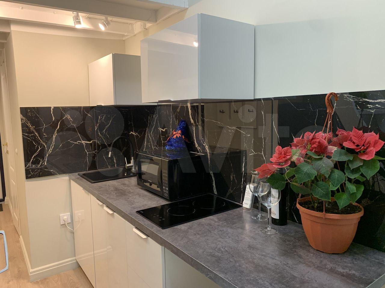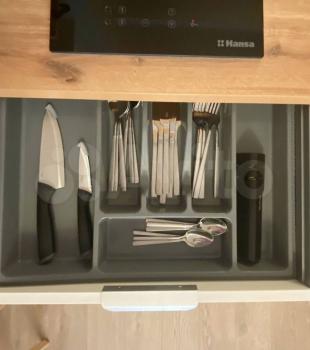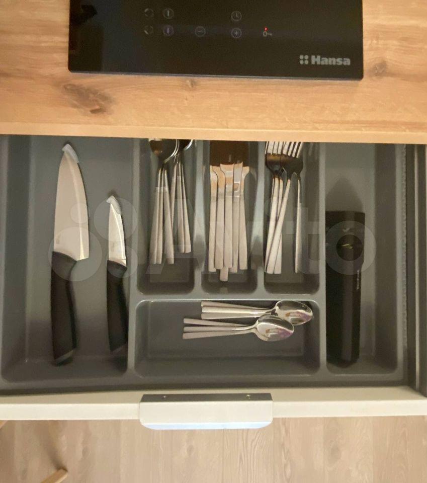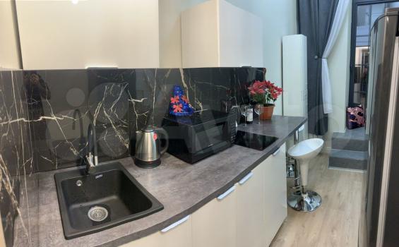 - Полностью обустроенная кухня (стильный матовый черный холодильник, бесшумный, вместительный; встроенная варочная панель; мойка из искусственного камня - вода не будет грохотать);