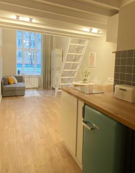 Сдаются двухуровневые апартаменты от собственника. 20м первый этаж и 15м антресольный этаж. Высота потолка 4м.