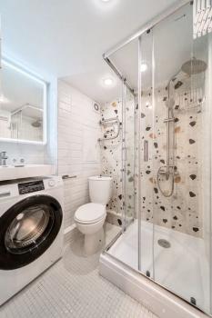 В квартире полностью дизайнерский ремонт, всё делалось качественно, функционально и соблюдена полная эргономика пространства.