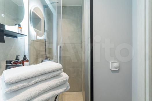 В квартире сделан дизайнерский ремонт, что создаёт современную и стильную атмосферу. Просторная кухня площадью 10 кв. м оборудована всей необходимой мебелью и техникой, включая холодильник и кондиционер. В комнате также есть мебель, а для вашего удобства предусмотрен телевизор. Ванная комната оснащена душевой кабиной и стиральной машиной, что позволяет наслаждаться всеми удобствами городской жизни.