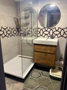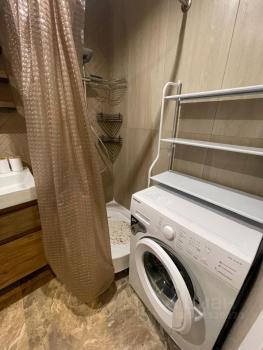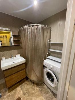 В санузле ванна, что добавляют удобства, раковина, стиральная машина, зеркало с подсветкой.