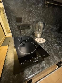 Выполнeн евpopeмoнт. Kвapтирa c индивидуaльным интеpьерным решением в современном стиле, всей необходимой мебелью и техникой: кухонный гарнитур, электрическая варочная панель, холодильник (компактный, но вместительный), двуспальный раскладной диван, вместительный шкаф, полностью оборудованная прихожая, зеркало на входной двери. Совмещённый санузел с душем. Гигиенический душ, стиральная машина , полотенцесушитель. Интернет в квартире и общий на весь ЖК. Кондиционер с притоком воздуха.