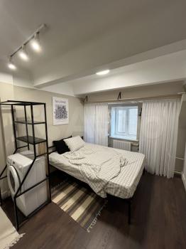 В апартаментах установлена климатическая система фанкойл, с возможностью управления под комфортный температурный режим. Высокие потолки 4,5м на первом этаже с двухкамерными окнами во двор с рулонными шторами.
