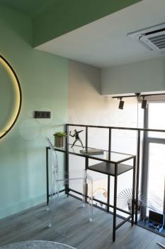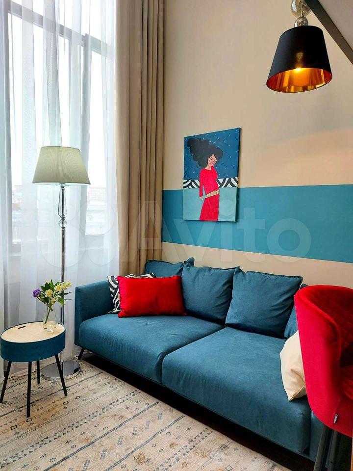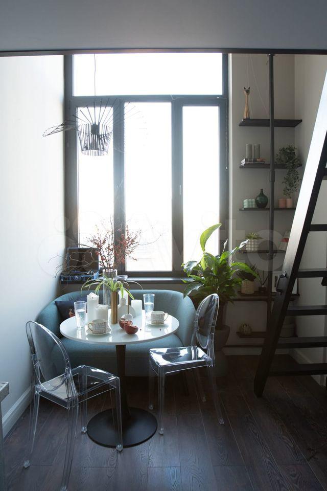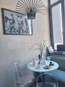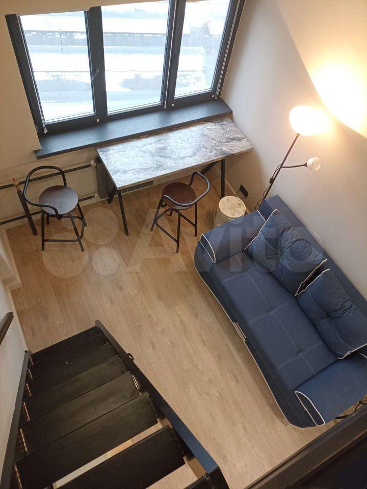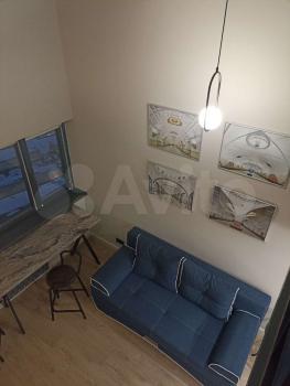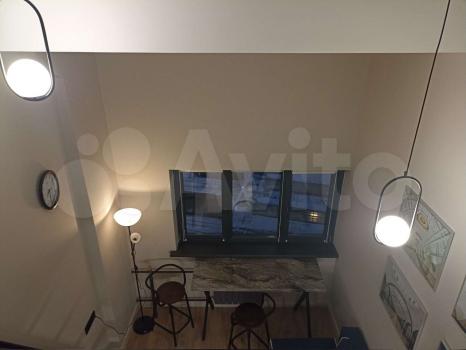 Двухуровневая студии 50 м (30 м первый этаж и 20 м - второй) с большими панорамными окнами в элитном комплексе Балтийская, 15 (здание оформлено в стиле современного модерна, роскошная винтовая лестница, зона отдыха с мягкими удобными креслами. Для жильцов доступны свой фитнес-зал, прачечная, лаунж-зона и коворкинг для комфортной работы и проведения бизнес встреч).