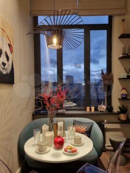 В квартире высокие потолки 1-го этажа и полноценный 2-й этаж (спальня), центральная система приточно- вытяжной вентиляции. Апартаменты полностью меблированы в комнатах и кухне новой техникой и мебелью. Дополнительно имеется отдельная гардеробная комната (встроенные шкафы). Возможность подключить скоростной интернет, а также воспользоваться парковкой (8 000 р в месяц).