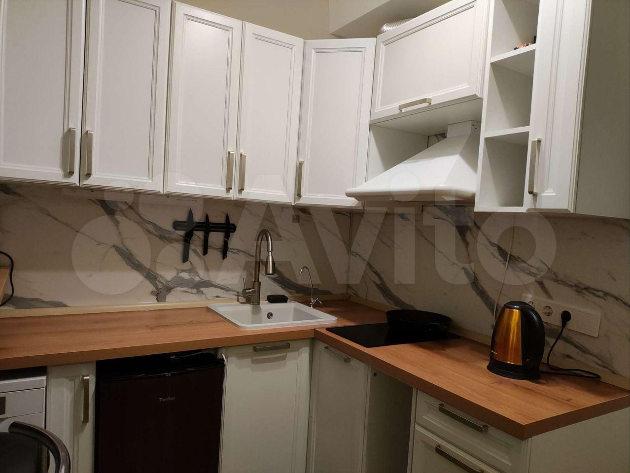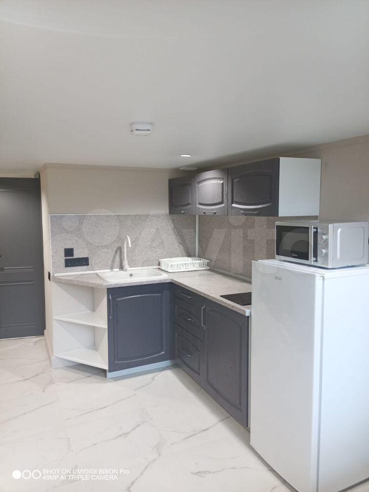 квартира-студия: отдельная небольшая кухня, санузел, комната.