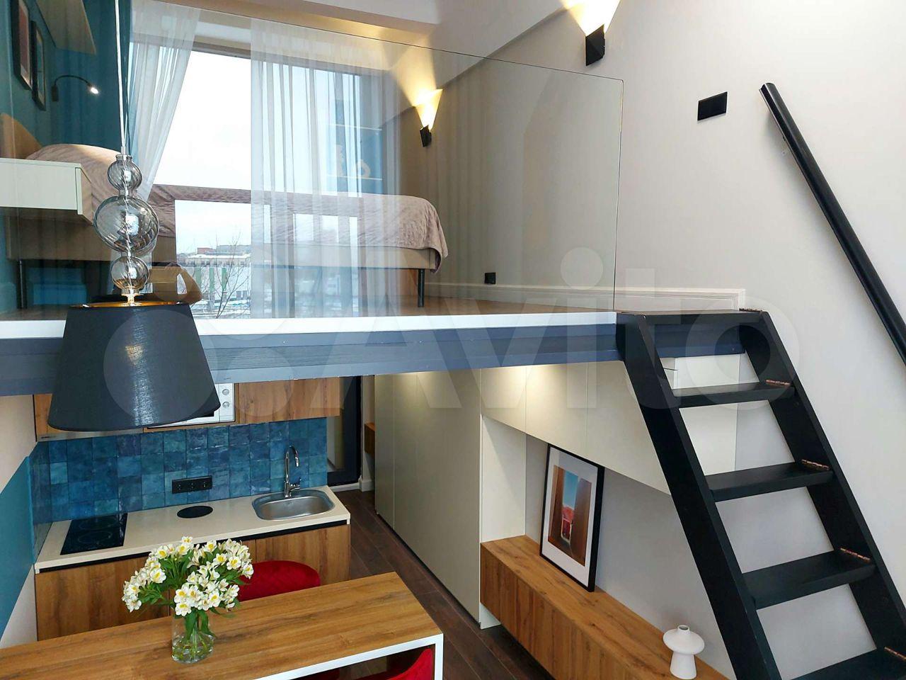 Сдается с 30 апреля. Новая двухуровневая студия в отличном апарт-комплексе Балтийская, 15. На первом этаже шикарный холл, как в достойном отеле, зона отдыха и коворкинга, бесплатный круглосуточный фитнес-зал с приличными новыми тренажёрами, кофе и снеки, очень дружелюбные и отзывчивые консьержи. Современный формат жилья.