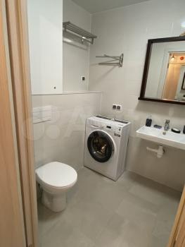 ⁃ Ванная комната выполнена по индивидуальному дизайну с продуманной дополнительной системой хранения и стиральной машиной.