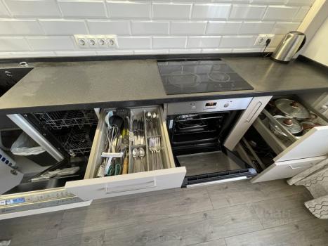 Квартира после профессионального клининга. Сдается первый раз. В квартире есть вся посуда, кухонная утварь, посудомойка, стиральная машина, утюг, отпариватель, гладильная доска.