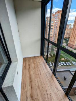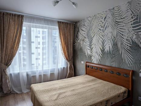 Кровать, шкаф, телевизор. Санузел совмещенный . Большая лоджия с панорамными окнами. Развитая инфраструктура, парки. Рядом метро (пешком 15-20 мин).