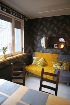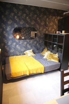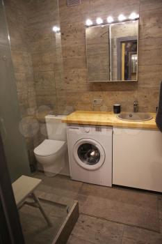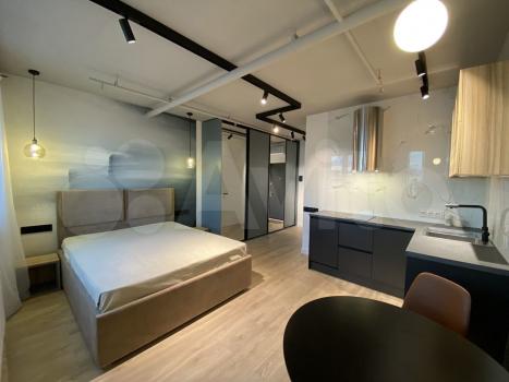 В студии есть всё необходимое для комфортного проживания. Просторная кухня площадью 8 кв. м оборудована современной мебелью и техникой: холодильником и стиральной машиной. Жилая зона (20 кв. м) также обставлена мебелью. Санузел совмещённый, с душевой кабиной. Окна выходят на улицу, поэтому в квартире всегда светло и уютно.