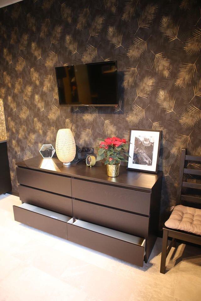 Апартамент рассчитан для комфортного проживания двух человек. Имеются: холодильник, стиральная машина, индукционная варочная плита (две конфорки), микроволновая печь, телевизор, необходимый набор мебели (ИКЕА) , полный комплект посуды. Интернет. Студия оборудована сигнализацией с детекторами дыма и системой пожаротушения. Действует центральная система вентиляции, домофон и тревожная кнопка на круглосуточный пульт охраны.