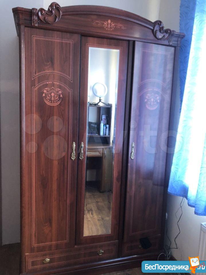 ✔в коридоре - шкаф для одежды с зеркалом, комод, банкетка;