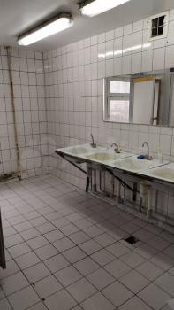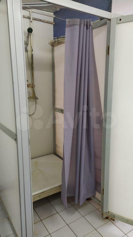 1. Туалетная комната с 5 кабинами. в расчете 1 кабинат на одну- две комнаты. кабина закрывается на замок. Ключ от кабины в комнате. Кабина оборудована гигиеническим душем(вода только холодная). Общая туатетная комната так же оборудована двумя раковинами со смесителями с горячей и холодной водой.