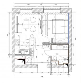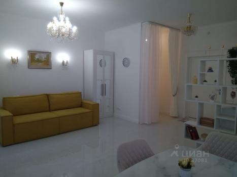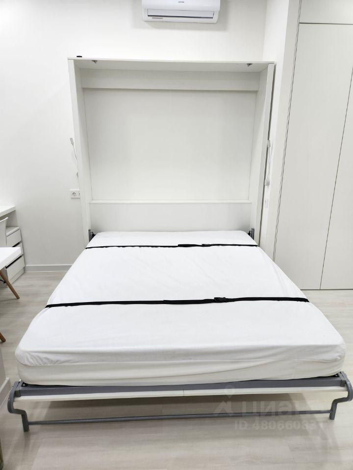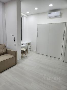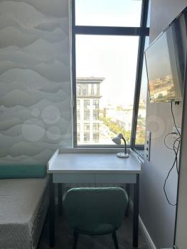 Зона кухни совмещена с зоной отдыха, рабочая зона ,зона сна -кровать 2х спальная трансформер ,прихожая со шкафом, ванная комната . Общая: 27 кв.м. Потолки 3 м. Квартира полностью меблирована и оборудована всей необходимой техникой. Подземный паркинг, огороженная территория с детской площадкой и зоной отдыха ,гостевая парковка