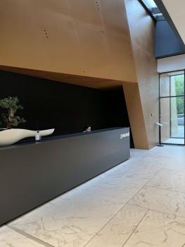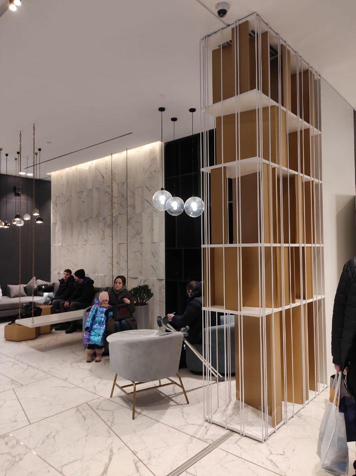 Рецепшен с консьержем, игровая комната рядом. Есть подземная парковка в доме и наземная около дома.