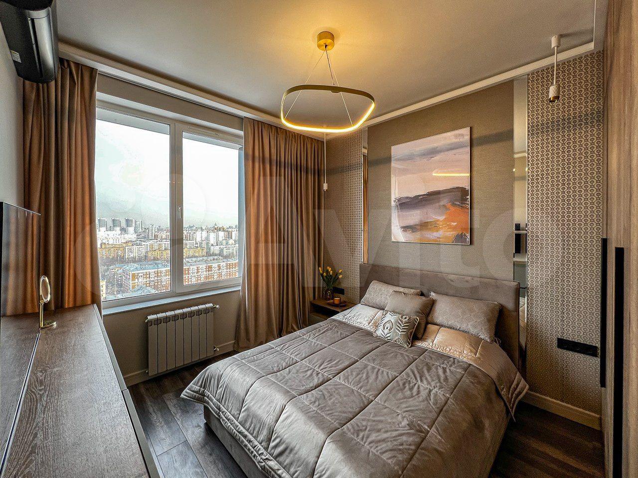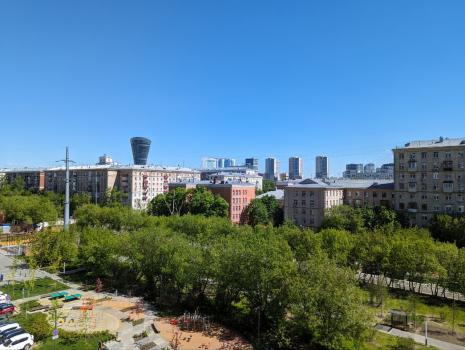 Новый дизайнерский ремонт с новой бытовой техникой и мебелью. Совмещенный санузел, кладовая, кухня, совмещенная с зоной отдыха и спальня. Вид на парк "Березовая роща", парк "Ходынское поле". Недалеко от метро Хорошевская, Полежаевская, Зорге.