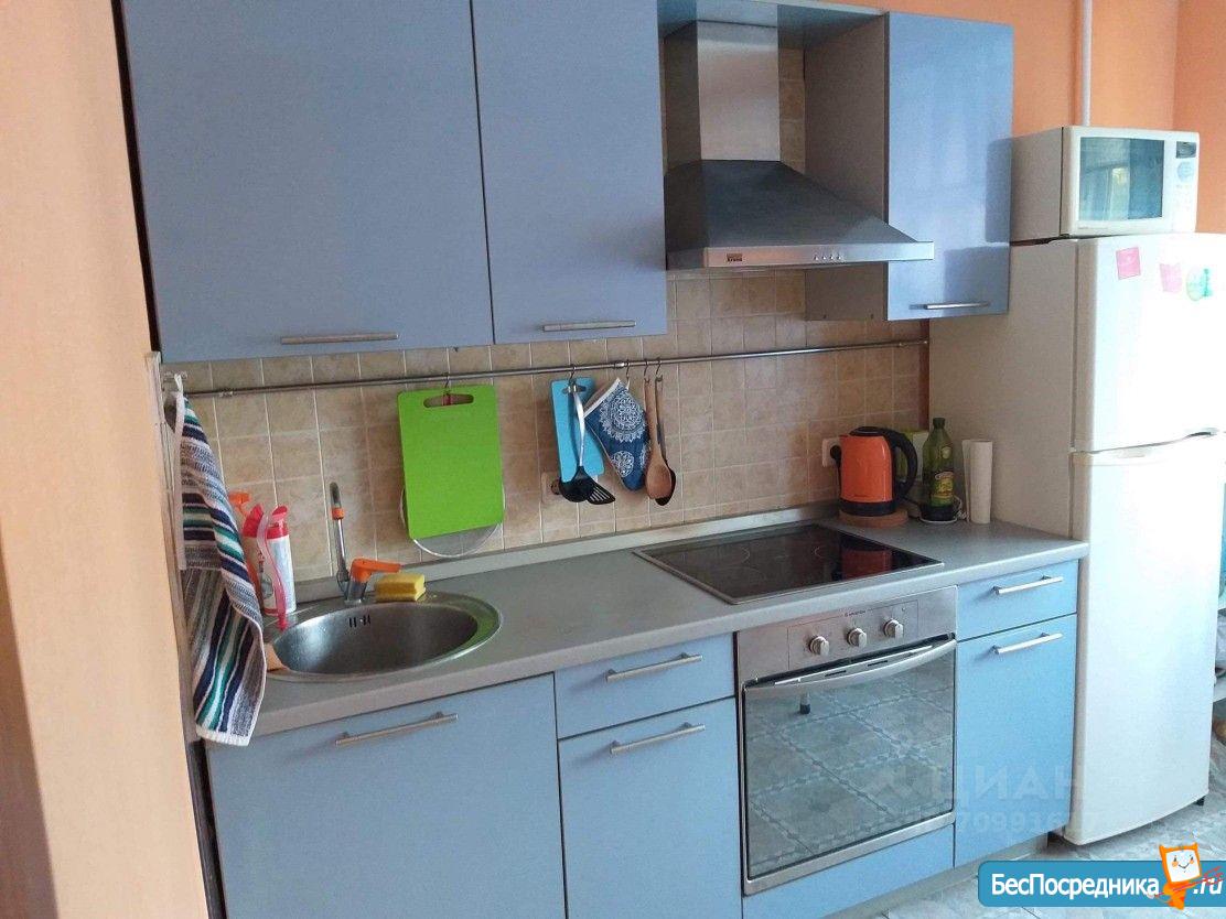 В квартире есть кухня с гарнитуром, столом, и 4 стульями, плита с духовкой, холодильник, кондиционер, свч по потребности.