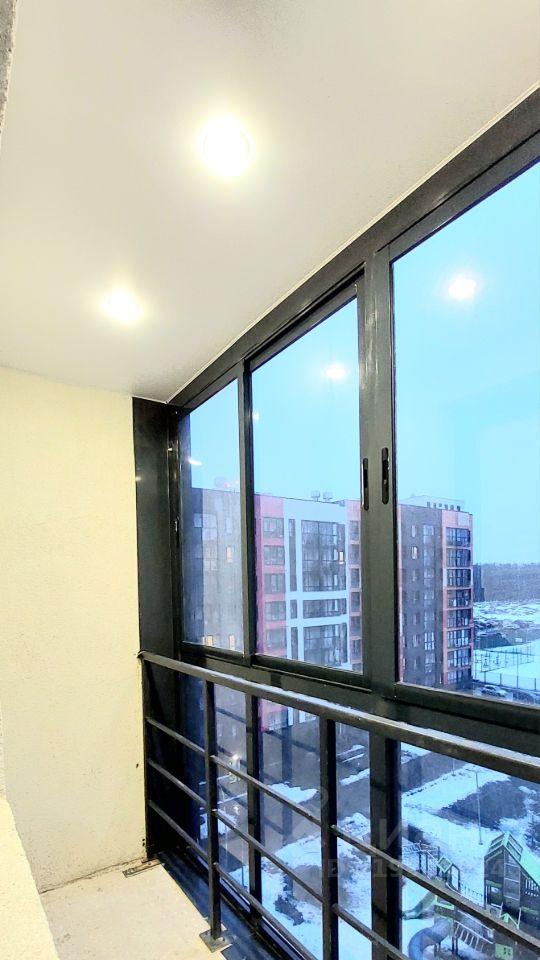 Студия 25 м2 с лоджией в ЖК Эко Бунино с отделкой, мебелью и техникой. Второй этаж, вид на детскую площадку.