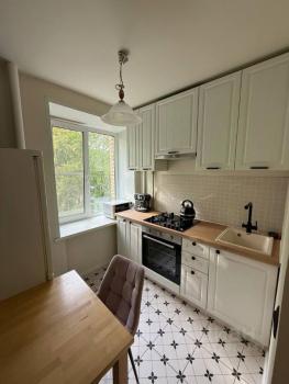 Квартира ранее не сдавалась. Свежий ремонт в светлых тонах, мебель: встроенные шкафы в комнатах и коридоре, раскладывающийся диван, кровать. Застекленный балкон. Раздельный санузел, стиральная машина, холодильник, микроволновка, новый кухонный гарнитур, духовой шкаф и плита, водяной фильтр.