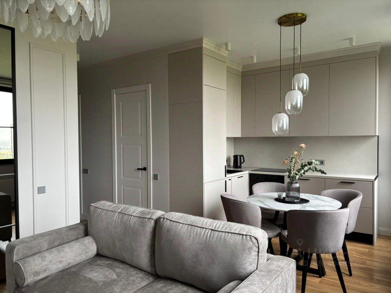 Отличная планировка: с просторной гостиной, функциональной кухней и полноценной спальной зоной. В квартире выполнен дизайнерский ремонт, она оснащена всей необходимой мебелью и бытовой техникой (кровать с ортопедическим матрасом, встроенные шкафы под потолок из МДФ с различными отсеками, множество вариантов освещения, теплый пол, много розеток, встроенный холодильник, духовая печь, индукционная плита, посудомоечная машина, вытяжка, стиральная машина).