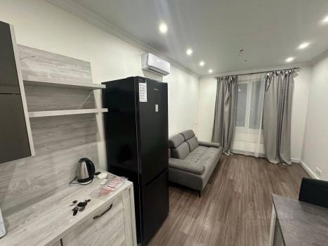 Квартира с евроремонтом, полностью готова к комфортному проживанию. В комнате и на кухне есть вся необходимая мебель, а также техника: холодильник и стиральная машина. Окна выходят во двор, что обеспечивает тишину и уют.
